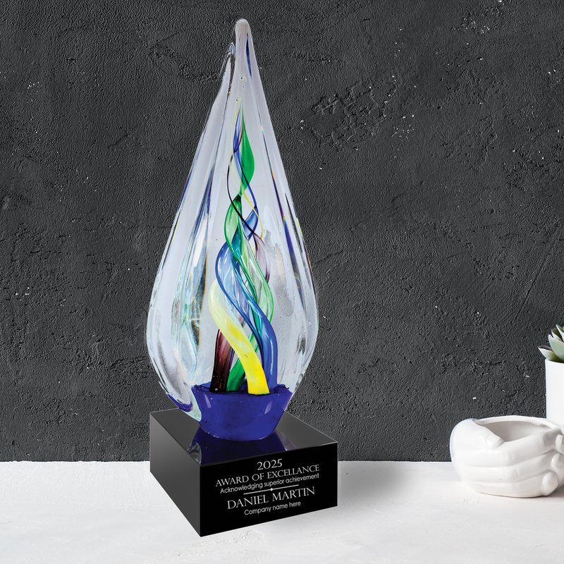 Ravanox Arch Jade Glass Desk Clock Award, 6 1/2"