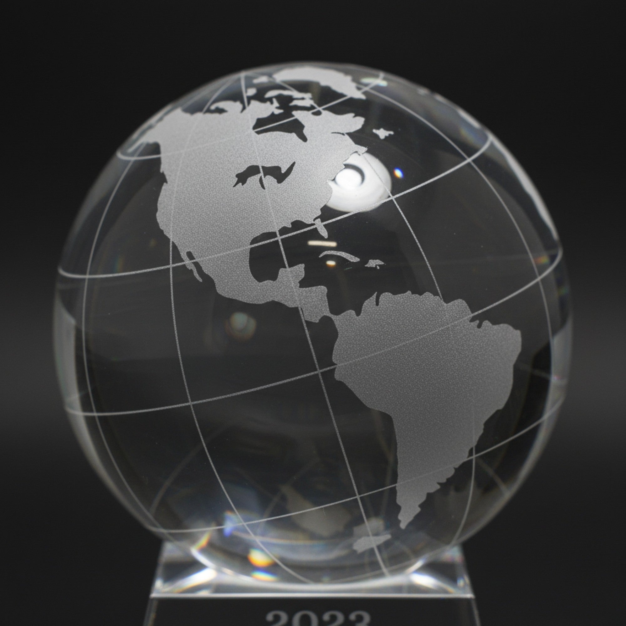 The Ravanox 5 1/2" crystal globe award offers a powerful and meaningful way to celebrate global impact, worldwide vision, and outstanding contributions across any field or organization. Crafted from premium optic crystal with a beautifully detailed frosted globe showcasing continents that catch light with subtle sophistication, this striking award measures 5.5 inches tall by 4.25 inches wide - the clear base providing a clean, modern foundation that elevates the piece on any desk, shelf, or display area while symbolizing far-reaching excellence and achievement. It arrives securely packaged in a satin-lined gift box, ready to honor remarkable accomplishments.