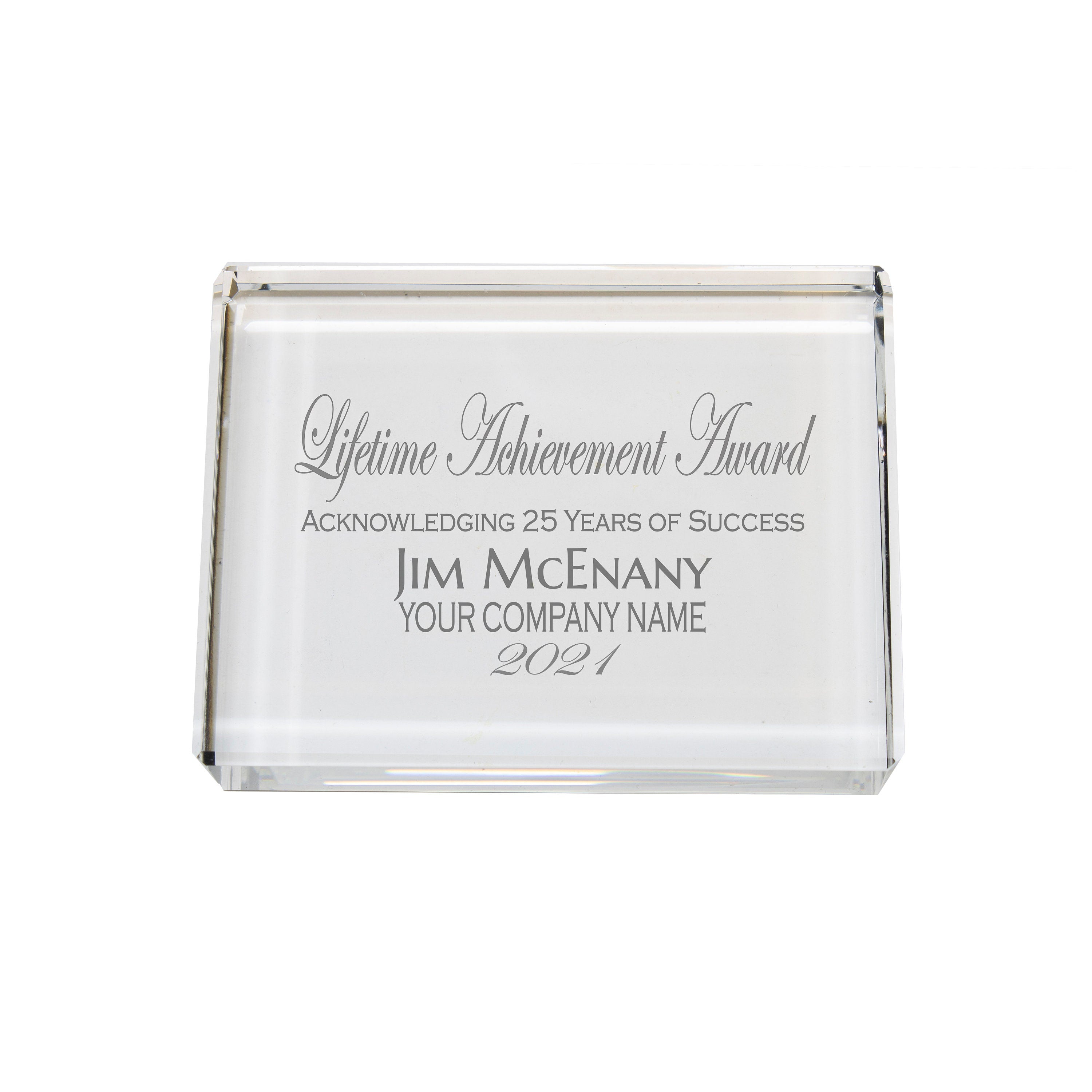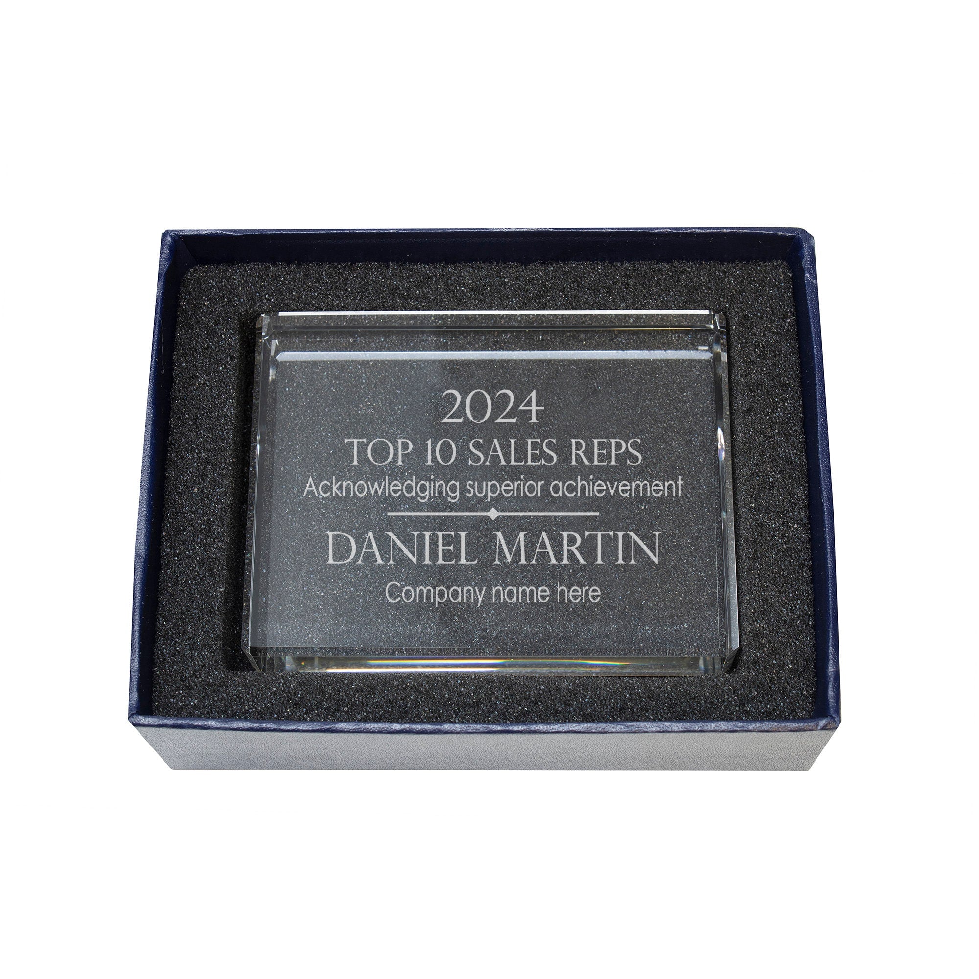 Present a distinguished token of appreciation with our Ravanox 4 inch Crystal Rectangle Paperweight. This substantial and elegant piece is a thoughtful luxury gift, perfect for honoring achievements, celebrating milestones, or acknowledging valued individuals. Each paperweight can be custom engraved with a personalized message, name, and date, creating a unique and lasting memento. Its clear, polished surface and crisp, precisely etched details elevate any desk or office space, serving as a constant reminder of dedication and success.