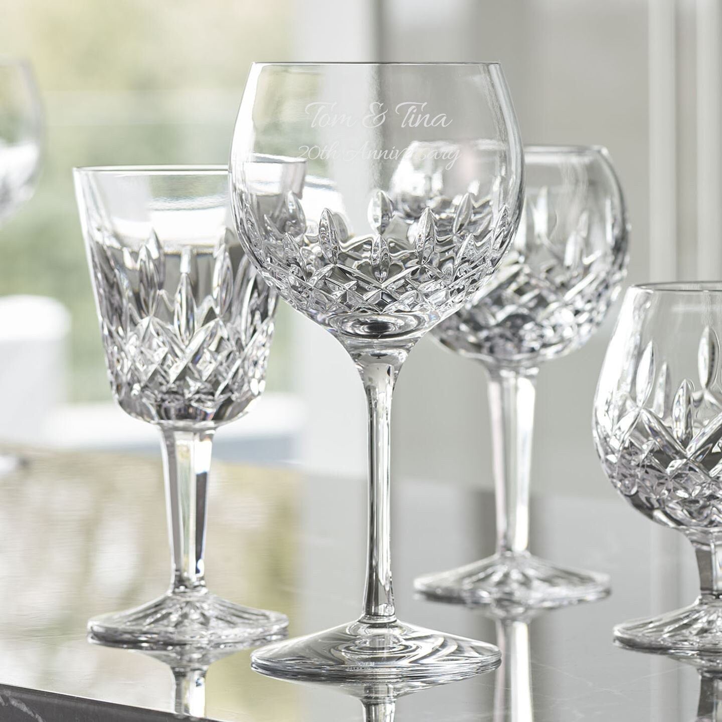 Make these glasses even more meaningful with our custom engraving. Add names, dates, a special message, or monogram to create a personalized and engraved gift that's perfect for weddings, anniversaries, birthdays, or celebrations among wine lovers. The engraving adds your heartfelt touch to the crystal surface, blending Waterford's modern take on a beloved pattern with versatile goblets for everyday or special pours.