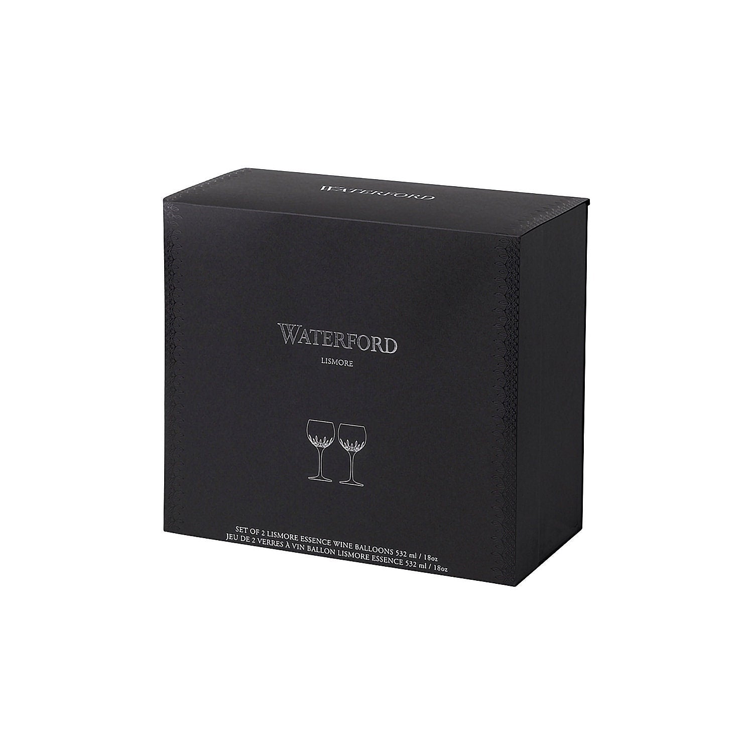 The Waterford Lismore Essence balloon wine glasses bring gentle radiance to enjoying red wines like Cabernet Sauvignon, Pinot Noir, Merlot, or lighter whites and rosés. Crafted from fine non-leaded crystal with a contemporary slender stem and the signature lighter diamond and wedge cuts that sparkle softly, each generous balloon-shaped goblet stands about 8.4 inches tall with a 4.2-inch width and holds 17 ounces - allowing ample room for swirling to release aromas while feeling light and balanced in hand. These glasses arrive in classic Waterford gift packaging and are best hand washed for enduring clarity.