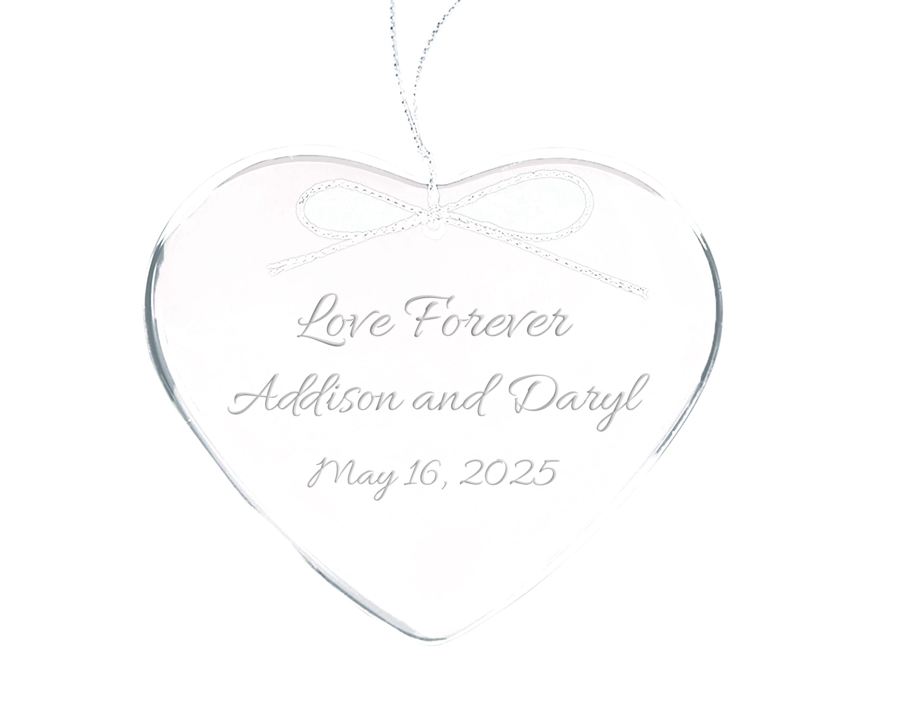 Celebrate special moments with a truly custom gift. This luxury 2.5 inch crystal clear glass heart ornament is a timeless addition to any holiday collection. Each piece is carefully engraved with personalized details such as names and a significant date, creating a cherished keepsake. Perfect for newlyweds or to commemorate an anniversary, this elegant ornament adds a touch of sophistication to your Christmas tree. Its durable design ensures it will be enjoyed for many seasons to come, making it a thoughtful and lasting custom gift.