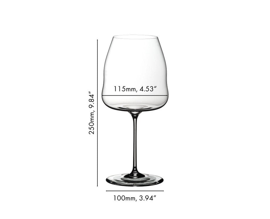 The Riedel Winewings Pinot Noir/Nebbiolo glass brings a touch of luxury to light-bodied red wines like Pinot Noir, Nebbiolo, Barolo, Barbaresco, red Burgundy, and Beaujolais Cru. Crafted from fine non-leaded crystal with a bold, flat-bottomed wing-like shape, this generously oversized glass stands about 9.8 inches tall and holds a full 32 ounces - noticeably larger than standard wine glasses - to allow ample room for swirling and aeration. Its dramatically wide bowl helps highlight rich fruit characters, temper high acidity, and emphasize minerality and nuance - especially suited to delicate, complex styles. Designed by Georg Riedel in 2020, it arrives in elegant gift box packaging and is dishwasher safe.