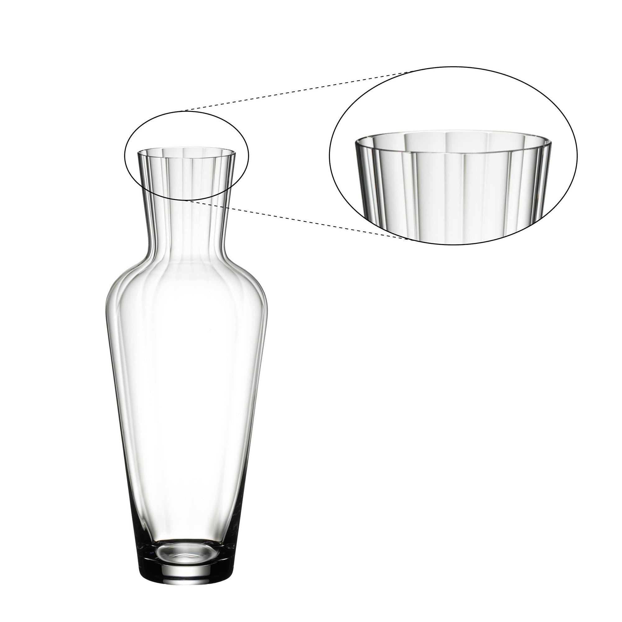 The Riedel Wine Friendly Decanter is crafted in Germany from brilliant, non-leaded crystal and designed to support gentle, everyday aeration for a wide range of wines. Its tall, streamlined profile allows wine to open gradually as it is poured, helping aromas and flavors develop without excessive exposure. Measuring 11.22 inches in height with a width of 4.25 inches and a 25-ounce capacity, the decanter has a light, balanced feel that fits comfortably into regular table use.