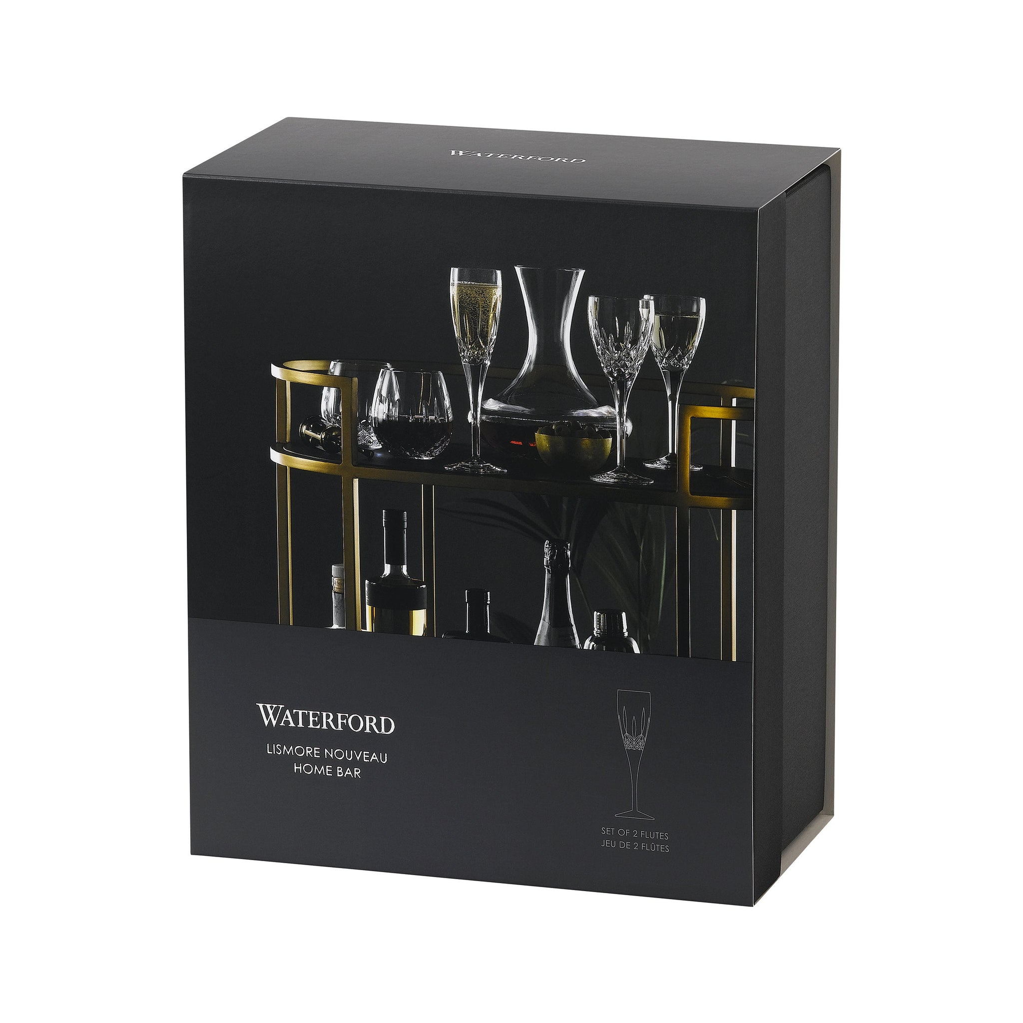 The Waterford Lismore Nouveau champagne flutes bring a fresh, contemporary grace to your toasts on your wedding day. Crafted from fine non-leaded crystal with a lighter, more slender take on the iconic Lismore diamond and wedge cuts that shimmer softly in the light, each tall flute stands about 8.2 inches high with a 3-inch width and holds 5 ounces - the elongated bowl and narrow rim preserving bubbles beautifully as you share that joyful clink together. These glasses arrive in signature Waterford gift packaging and are best hand washed to keep their delicate radiance for all your anniversaries ahead.